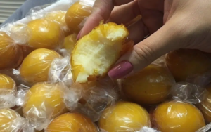 5- Para saber o ponto da calda, pegue uma porção de calda e coloque dentro de um copo com água. Se a calda endurecer, obtendo uma bolinha que quando jogada contra bancada fizer barulho, é sinal de que ela está correta para cobrir as balas.