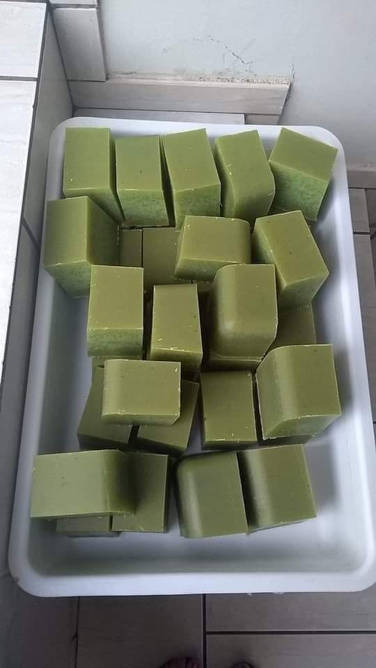– formas de plástico para sabão em barra untadas com óleo