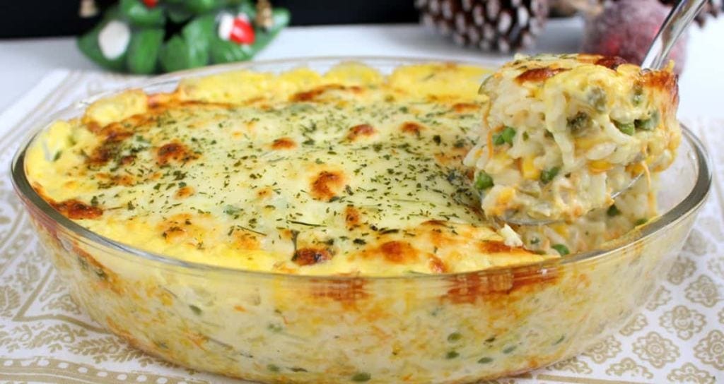 – 4 xícaras de chá de arroz cozido – 4 ovos – 1 xícara de chá de leite – 1 xícara de chá de queijo parmesão ralado – Sal, pimenta-do-reino, noz-moscada e salsinha picada a gosto