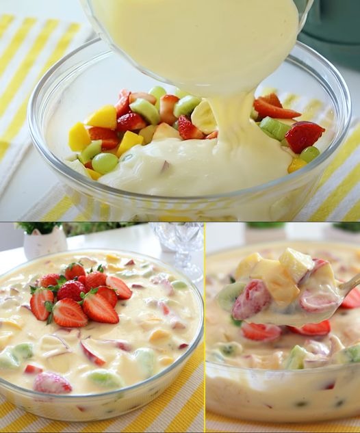 2 xícaras de frutas picadas (como manga, morango, kiwi e uva)