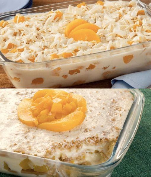 1 lata de pêssego em calda, metade deles picado e a outra metade fatiado.